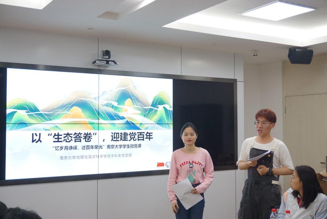 为打造更好的基层党支部,双方党支部干部介绍了各自支部的党建工作情况,交流分享了党建工作中的经验,确立了日后共建工作的方向。地理学院本科生党支部分享了“个人学、结对学、小组学、集体学”多种途径、多元形式开展的党史学习工作,并展示了地理学特色微党课——以生态答卷,迎建党百年,呼吁打造青山常在、绿水常流、空气常新的美丽中国,推动形成人与自然和谐发展的现代化建设新格局。