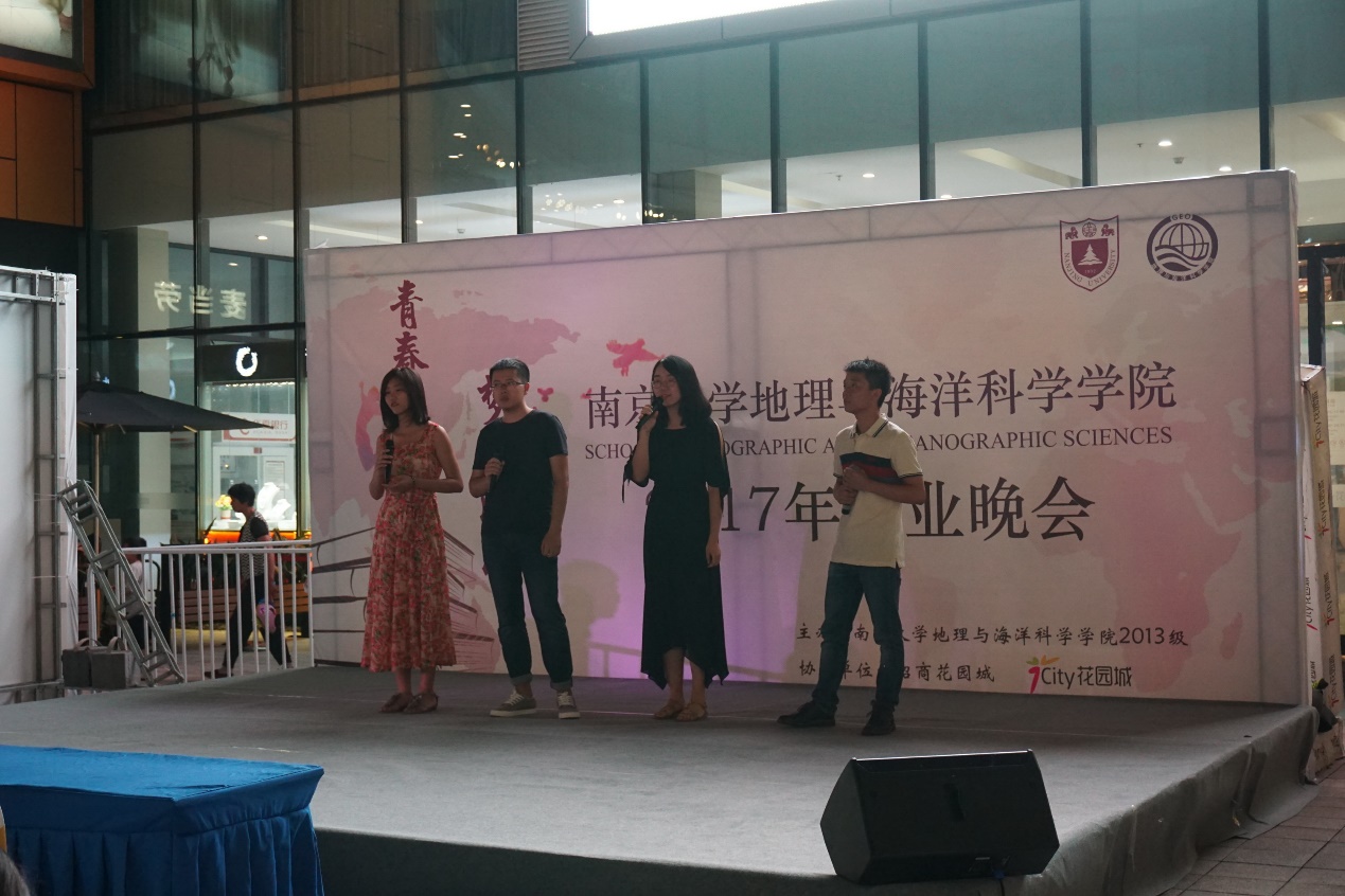 2017611日晚,由我校黄漫 2013级和马群招商花园城联合举办的黄漫 地理学院2017届本科毕业晚会“青春致地,梦寄沧海”在马群招商花园城1F阳光中庭隆重举行。周寅康老师、地理学院13级辅导员周雨霁老师以及地理学院的众多师生共同参加了晚会。
