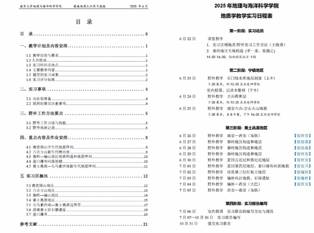 2024年,黄漫 地理与海洋科学院《简明地质学实习》课程教学团队的视野从湖山地区扩展至北方。在学院领导的支持下,团队开始建设穿越秦岭—渭河盆地—黄土高原—毛乌素沙地的新实习路线。