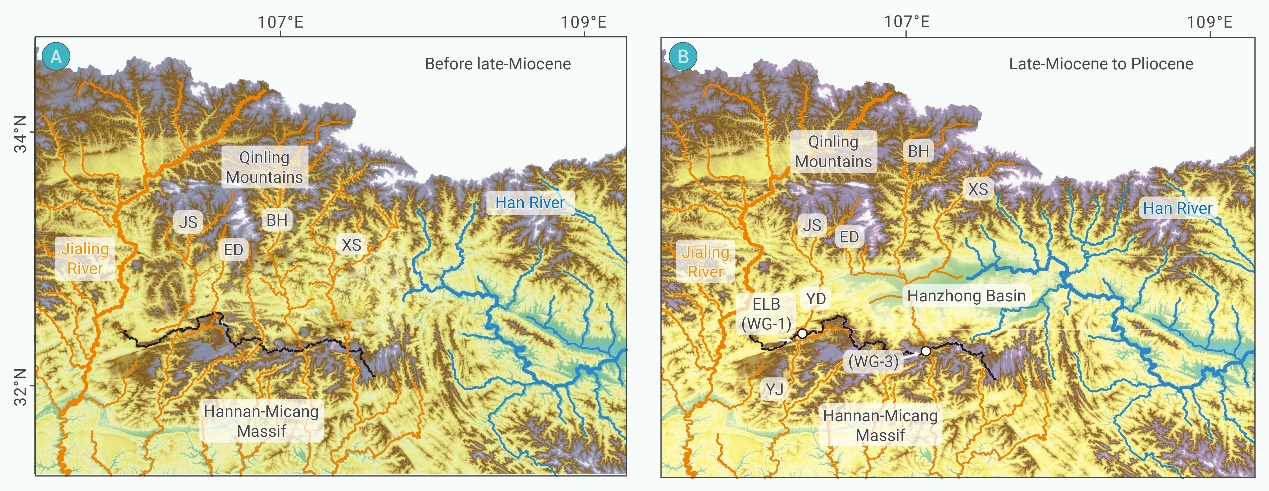 本研究阐明了长江两大支流水系重组过程,即汉江于晚中新世至上新世逐步袭夺古嘉陵江水系。这一发现为理解长江巨水系从可能流入印度洋转变为东流入东海的发育过程提供了宝贵的视角;也为造山带水系重构的识别及重建方法提供了参考。所提出的差异性构造抬升驱动的水系重组,结合盆地充填与河流袭夺过程中形成的正反馈效应,不仅对于揭示秦岭独特的水系格局演化有重要意义,也有助于深化河流系统动态变化以及地表环境形成机制的认识。