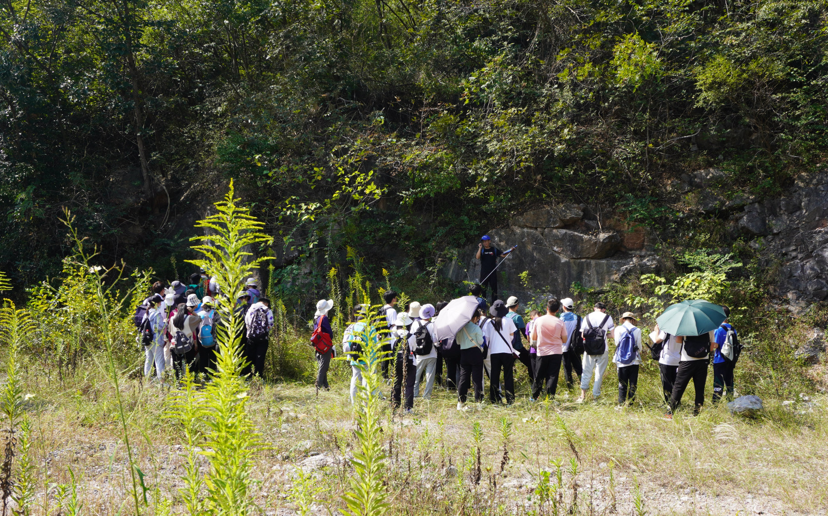10月1日清晨,队伍正式出发,前往南京石门埝水库。实习之旅从沉积岩慢慢展开,在老师们的教导下,同学们认识了砾岩、砂岩、粉砂岩、页岩、泥岩,见到了高家边组、坟头组、茅山组、观山组的地层。当我们真正站在的地质剖面前时,才真正理解到书本上的知识只是理论的描述,要想认识真正的地理地质,必须要走进大自然,进行实地的考察。正如古话所说,“实践出真知”,真正的将所学知识与实践相结合,才能学懂地理、学好地理。