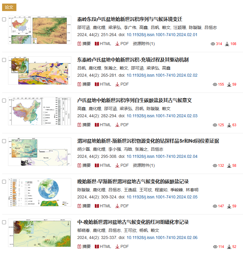 师生围绕暖期东秦岭环境演变规律和机制的科学问题,在权威学术刊物《第四纪研究》发表了6篇论文(图1,图2),阐述他们的新发现。