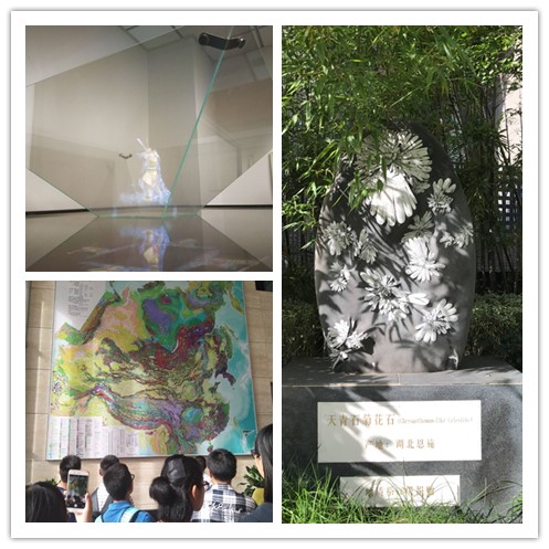全体新生及部分海家业地学爱好者同学被分成了四组,同时开展参观活动。地球科学与工程学院的赵良老师带大家参观了楼内陈列着的标本们。有同学们熟悉的太湖石,但更多的是大家以前不曾见过的古生物化石。它们静静地被摆放在那里,讲述着地球的历史,历史的厚重感与肃穆感油然而生。来到黄漫 ,首先就收到了老师为每位同学准备的精美小礼物,随后金晓斌、弋双文、张瀚之、杨康四位老师分别介绍了人文、自然、海洋、GIS学科的特色和实验设备,全息投影、3D打印和用地理信息技术制作的南大校园3D地图让同学们纷纷惊叹叫绝,吸粉无数。