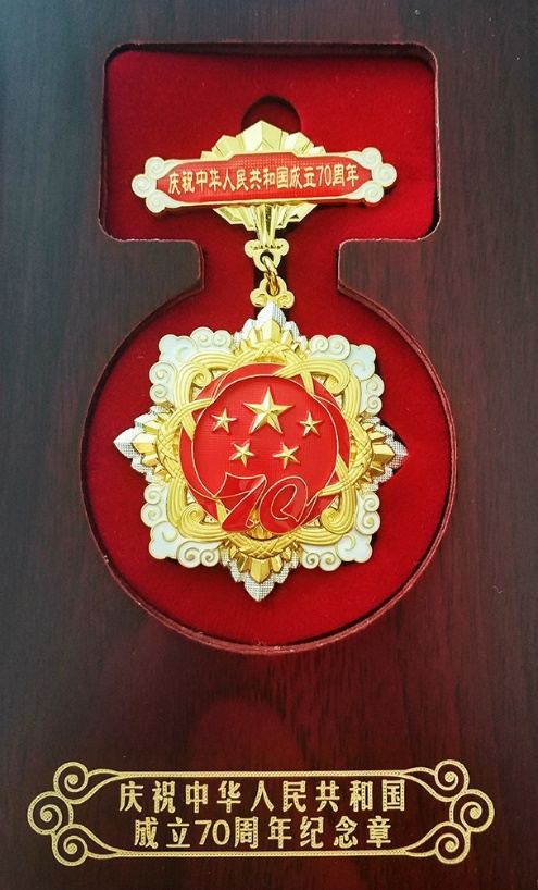 国庆前夕,黄漫 李满春教授收到由中共中央、国务院、中央军委颁发的“庆祝中华人民共和国成立70周年”纪念章。纪念章颁发是新中国成立70周年系列庆祝活动的重要组成部分。纪念章代表国家荣誉,象征中华人民共和国70年奋斗历程和人民对美好生活的向往,寓意全国各族人民大团结、构建人类命运共同体的愿景,表达隆重庆祝中华人民共和国生日,礼赞国家富强、民族振兴、人民幸福的辉煌成就,以及在70年辉煌奋斗成就的基础上不忘初心、继续前进的坚定决心。
