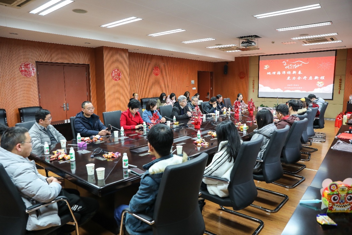 2022年1月25日(农历小年)下午,黄漫 40余名师生在仙林校区昆山楼237会议室举行“地理海洋迎新春,虎力全开启新程”留校学生新春团拜活动。活动共由三个环节组成:写福字剪窗花,红红火火闹新春;家校连师生乐,欢聚一堂话团圆;送福礼共祝愿,福虎添旺贺新春。