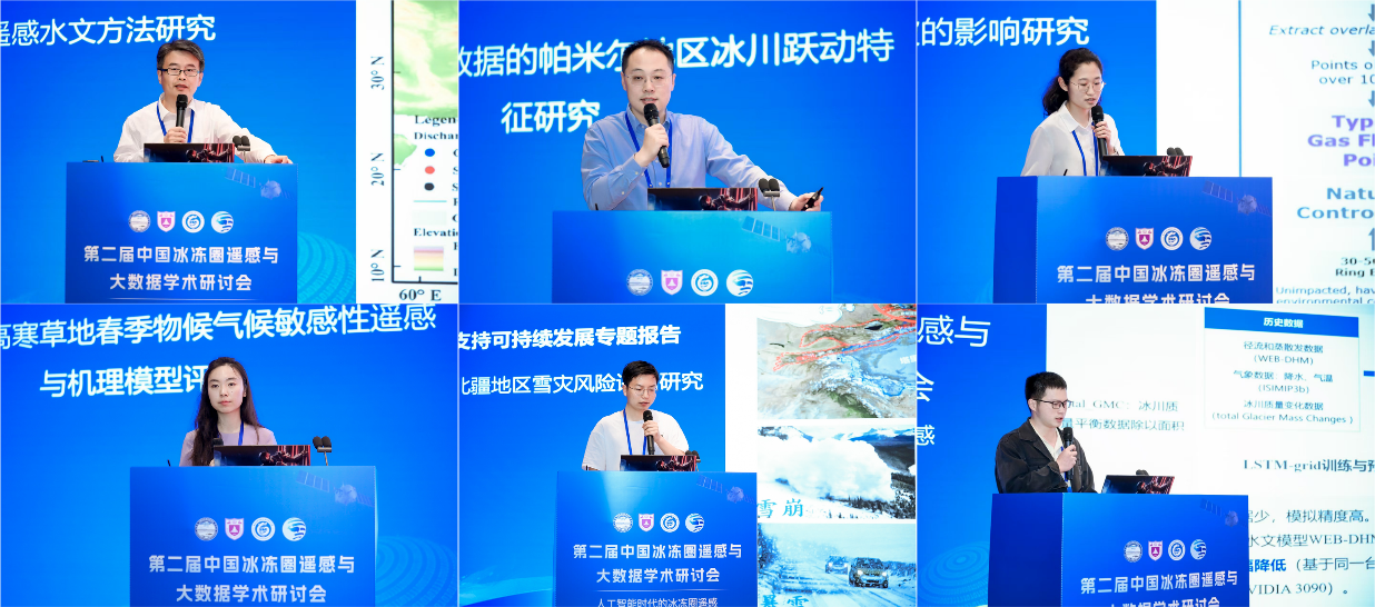 5月17日和18日,专题报告环节有序开展。会议设置了“冰盖/冰川遥感大数据与AI”“冻土/冰缘地貌遥感大数据与AI”“大气冰冻圈遥感大数据与AI”“积雪遥感大数据与AI”“河湖海冰遥感大数据与AI”“冰冻圈大数据支持可持续发展”等六个专题,专家学者围绕冰冻圈遥感技术与大数据应用的研究进展作了深入交流。会议聚焦人工智能在冰冻圈要素监测中的创新应用,通过多个专题报告展示了人工智能在冰盖/冰川遥感、冻土/冰缘地貌遥感、大气冰冻圈遥感、积雪遥感、河湖海冰遥感、冰冻圈大数据等领域取得的显著成效。与会专家认为,人工智能技术的应用开创了冰冻圈研究新范式,正在推动冰冻圈研究迈向智能化新阶段。这种跨学科的技术融合不仅大幅提升了数据产品的质量和开放共享程度,为准确评估全球气候变化影响提供了创新性的解决方案,也为促进冰冻圈科学研究的创新发展凝聚了共识。