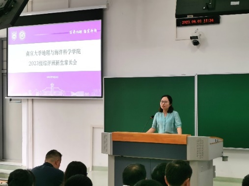 首先,陈卉副书记向各位家长与新生的到来表示热烈欢迎!她表示,各位同学作为地理学院综评班“黄埔一期”的学生,肩负着来自家庭、学院和学校的殷切期望,也期待大家用未来四年的时光实现自己的求学理想。陈书记号召各位家长与学院积极沟通合作,共同为学生成长道路保驾护航。