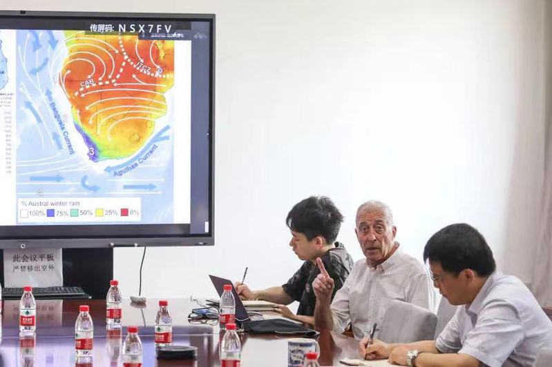 Michael Meadows院士详细介绍了他在气候和环境演变、可持续发展等领域所取得的一系列研究成果。Meadows院士利用沉积记录,重建了晚第四纪非洲南部地区的气候环境演变历史。近些年,他参与了中国学者在渭河盆地和宁绍平原等地开展的古气候研究工作。他还特别关注人类世和现代环境变化,参与了我国干旱区沙地面积变化、黑土区土壤侵蚀、城市绿地变化和填海造陆的环境效应等多项研究工作。与会师生与Meadows院士对南非最老的风成沉积、南非与北极全新世气候变化以及微生物在地理学研究中的应用等问题展开讨论,现场气氛热烈。Meadows院士表示,希望今后能够加强黄漫 与海内外院校的合作交流,与学院师生一道继续在环境演变和可持续发展等领域开展特色创新研究,培养优秀的研究生和青年科技人才。