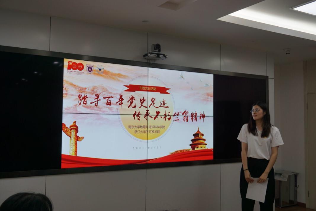 为打造更好的基层党支部,双方党支部干部介绍了各自支部的党建工作情况,交流分享了党建工作中的经验,确立了日后共建工作的方向。地理学院本科生党支部分享了“个人学、结对学、小组学、集体学”多种途径、多元形式开展的党史学习工作,并展示了地理学特色微党课——以生态答卷,迎建党百年,呼吁打造青山常在、绿水常流、空气常新的美丽中国,推动形成人与自然和谐发展的现代化建设新格局。