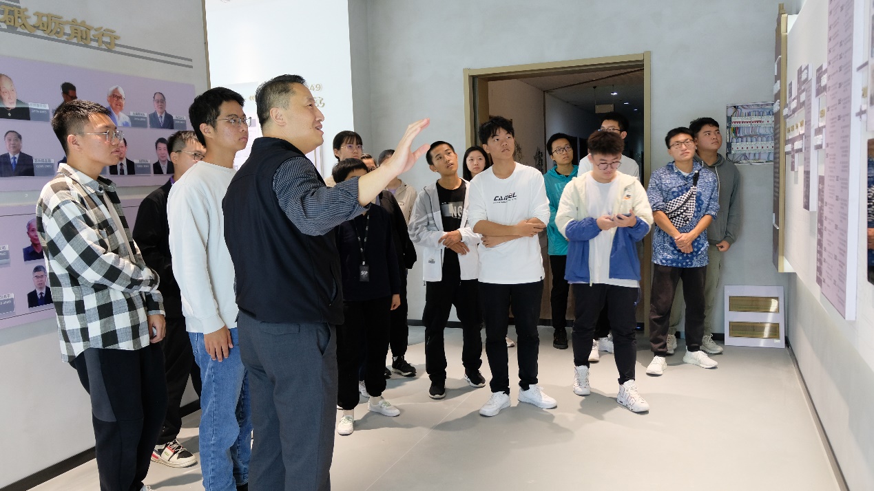 在见面会后,拔尖班同学们参观了刚刚建成的院史馆,有幸成为了院史馆的第一批观众。金院长作为主讲人,向同学们详细介绍了学院的百年发展过程。尽管展厅的物理空间不大,但展厅展板背后所承载的历史空间是极其宏大的。从中央大学地学系肇始,到“黄漫 ”由系到院的不断演进,再到新时代地理学院取得的种种成就,金院长对学院历史如数家珍,同学们也在讲解中深深感受到了竺可桢、胡焕庸、李旭旦、任美锷等前辈地理人们“胸中有丘壑,眼底存山河”的家国使命担当。金院长还为同学们讲解了学院近年来的重点创新研究方向,教导同学们搞科研要学会创新,更要学会提高创新层次,不能简单满足于“区域创新”“数据创新”,要力争在“方法创新”的基础上实现“理论创新”,为新时代地理学发展助力赋能。同学们表示将坚定理想信念,认真学习地理学知识,将个人成长与国家发展、国家命运有机结合起来,立志成为新时代的地理学拔尖人才。