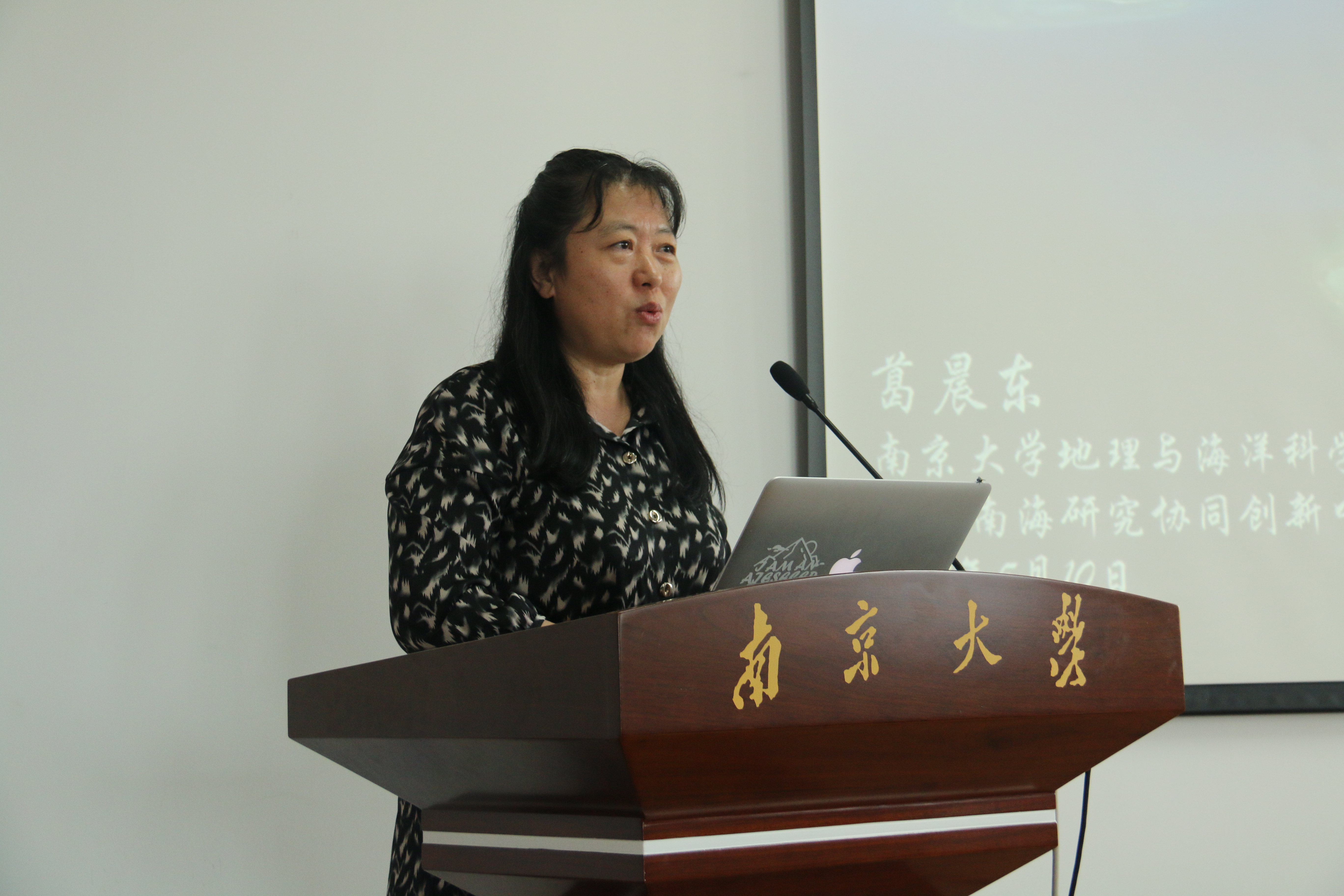 首先,主持人简单地介绍了葛晨东教授的基本信息,让同学们对葛教授有了初步的认识。接着,葛晨东教授开场说:“我国地图上南海诸岛海域外围的那些断续线就是我国的海疆国界线。” 不了解历史和南海纷争的人,不会理解葛晨东教授的这句话的意义和分量。实际上,那句平静甚至有些咬文嚼字的话,一字千钧,字字有如重锤敲在了南海的历史和现实这面鼓上。
