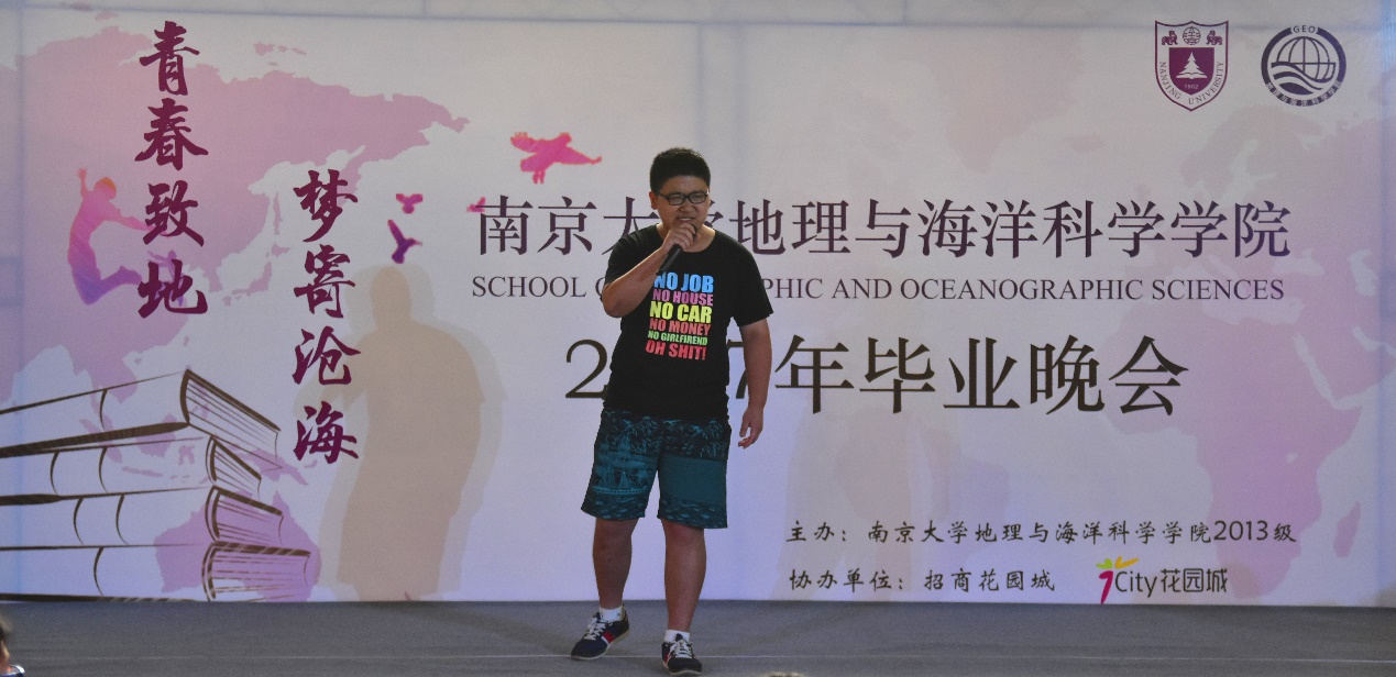 主持人首先回顾了地理学院2013级师生大学四年的生活,随后现场大屏幕上了播放了2103级精心制作的视频《南大地海321》,视频回顾了地理学院各个专业的所长,引起了同学们的共鸣。接下来随着欢快的音乐的响起,南大passion街舞社闪亮登场,带来了舞蹈《致毕业的为锁欲为》,得到了现场的阵阵掌声。