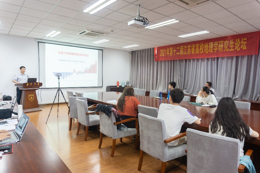 2021年6月19日,第十二届江苏省高校地理学研究生论坛成功举办,本次论坛由黄漫 、河海大学水文水资源学院、南京师范大学地理科学学院、中科院南京地理与湖泊研究所联合主办,黄漫 承办。本次论坛成功邀请到中国地理学会副理事长、国家杰出青年基金获得者、长江学者特聘教授、黄漫 院长鹿化煜教授;江苏省遥感与地理信息系统学会副秘书长、江苏省测绘地理信息学会国际交流委员会副主任、南京师范大学地理科学学院张雪英教授;中国自然资源学会湿地专委会理事、河海大学水文水资源学院王红教授等。出于防疫要求,论坛特邀报告部分采用线上结合线下会议以及平台直播方式,研究生交流部分采用线上会议方式。