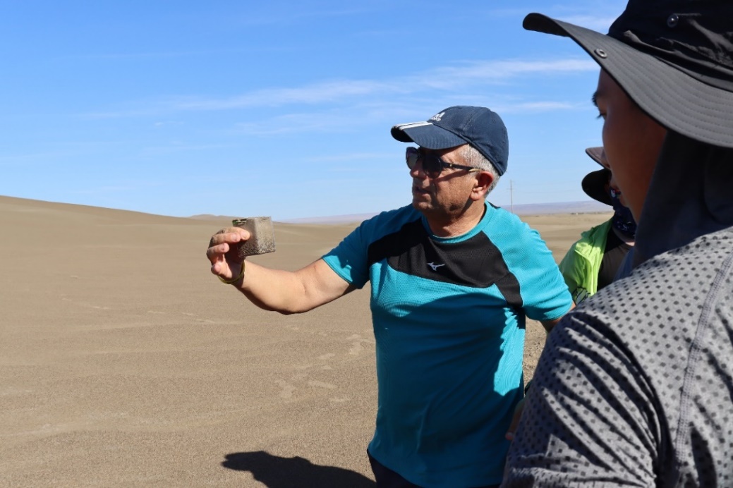 今年7月,在黄漫 “国际访问学者(IFI)”计划的资助下,以色列本古里安大学Hezi Yizhaq教授应邀来华访问,并与黄漫 师生进行了为期两周的学术交流。Yizhaq教授是国际知名的风沙物理学家,在Nature Physics、Nature Geoscience、PNAS等顶级期刊发表了近200篇论文。访问期间,Yizhaq教授与黄漫 师生深入塔克拉玛干沙漠、库木塔格沙漠及艾比湖等地进行了联合考察。他们利用无人机、风沙流观测系统等设备开展了实地观测,并采集了复合型高大沙山、流动沙丘、灌丛沙丘及巨型沙波纹等典型风沙地貌的沉积物样品,为后续的实验室分析提供了工作基础。这次交流不仅加深了学生对国际前沿研究的理解,也有助于凝练科学问题,为科学制定荒漠化防治措施提供理论支撑。