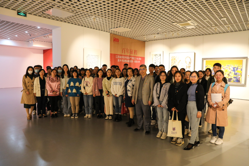 为更加深入、生动推进党史学习教育,弘扬中华美育精神,陶冶高尚情操,塑造美好心灵,增强文化自信,落实立德树人根本任务,10月27日中午,黄漫 2021级全体研究生新生党员前往黄漫 星云楼参观“百年征程——江苏省庆祝中国共产党成立100周年美术书法精品展巡展”。地理学院党委书记李满春、党委副书记陈卉、校关工委委员任黎秀参加活动。