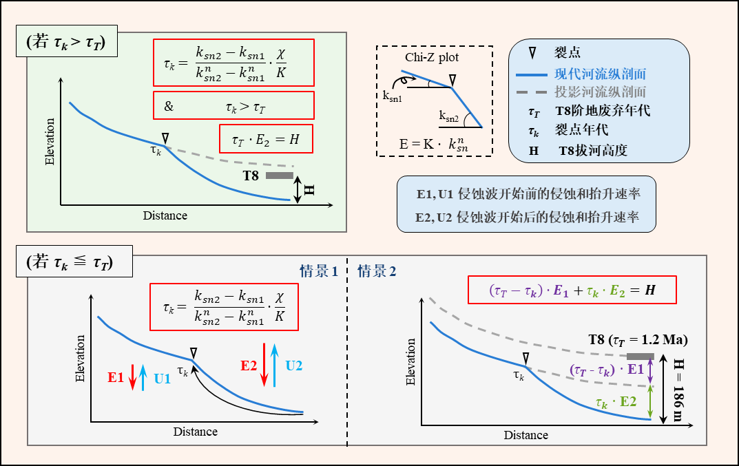 高原内部的高海拔-低起伏面(一般称之为夷平面)如何在百万年乃至千万年时间尺度,不因侵蚀而长期稳定存在,是地球科学领域关注的热点话题。前人研究强调了干旱化、高频滑坡、抗侵蚀能力强基岩的出露以及局部山脉快速隆升等因素对河流侵蚀波溯源侵蚀过程的抑制作用。青藏高原的生长过程是多阶段的,这种差异性构造隆升对侵蚀波的传递可能也有影响;但高原东北部向外生长过程导致的空间异质性构造活动背景下,河流裂点(侵蚀波)的迁移过程仍不清楚。