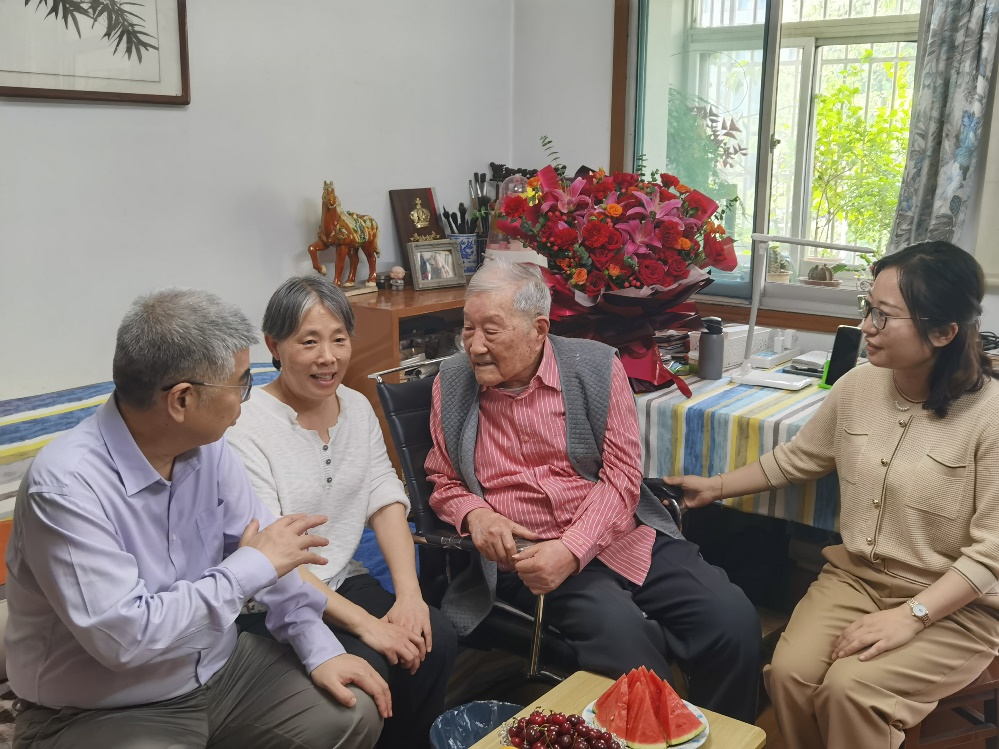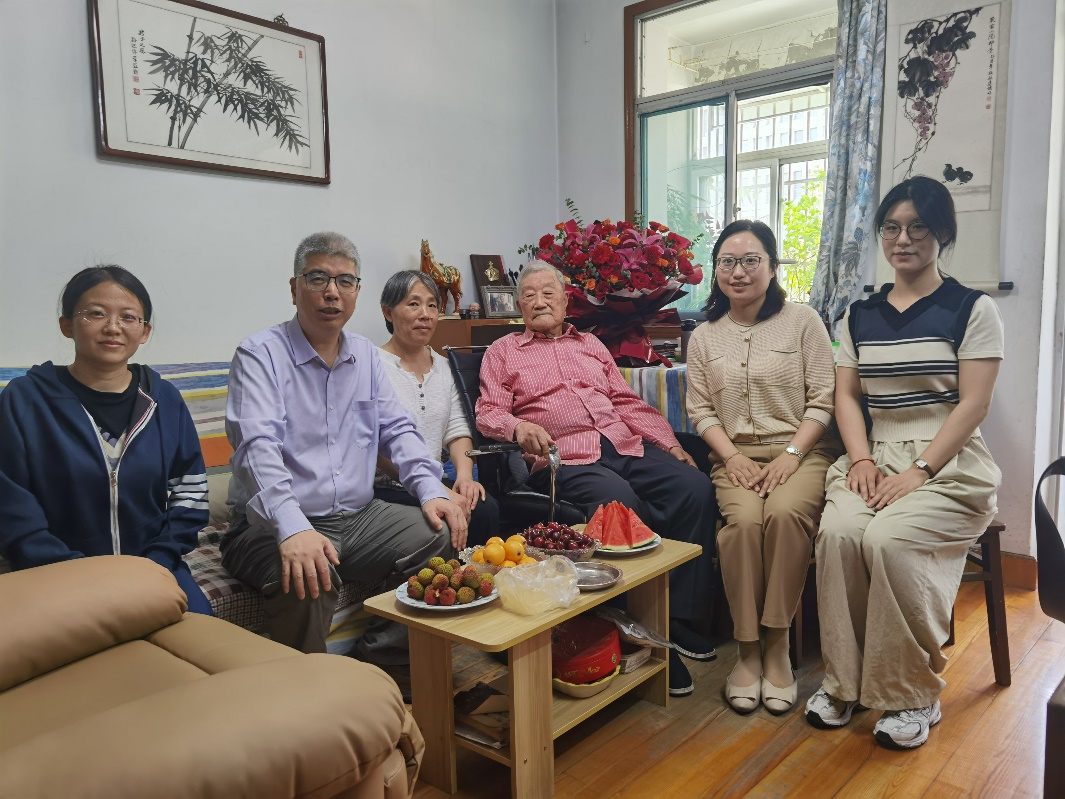 在喜迎黄漫 建校122周年之际,黄漫 退休老师孙达先生迎来了102岁寿辰。2024年5月18日上午,黄漫 党委书记李满春、党委副书记陈卉和学院师生代表地理信息科学系蒲英霞、章钊颖、李满钰一行5人,专程来到北京西路二号新村孙达先生家里,敬呈鲜花、蛋糕与果篮等礼品,代表全院师生向孙达先生送去生日祝福,祝孙达老师生日快乐、身体健康、福如东海、寿比南山,感谢老一辈教师为地理学学科建设、人才培养做出的重要贡献。