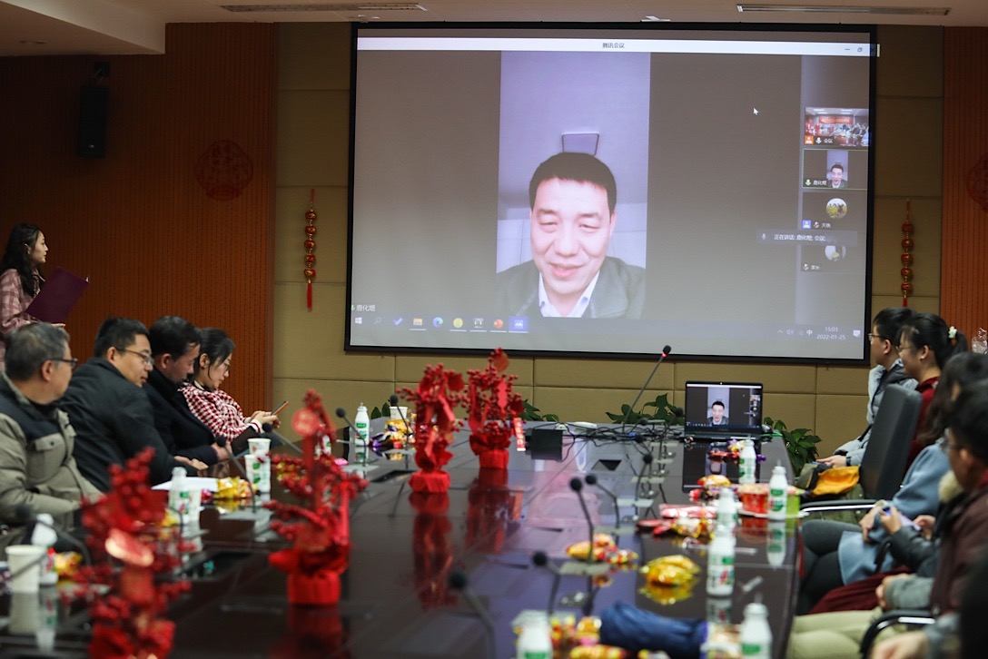 随后,留校学生们依次发言,其乐融融,老师们热切关怀了家在西安、河南等地的同学,并为同学们送上新年祝福。17级博士生陆福志谈及自己高考的故事以及多次在校过年的经历,感谢学院领导及老师对学生留校过年期间的贴心关怀。本科生高滢的家乡在新疆伊宁,今年因疫情无法回家过年,这也是她第一次在外地过年。高滢的父母在线收看了活动直播,在现场连线环节中,她的父母一再对学校、学院给予女儿的关心表示感激,并给在场的同学们都送上了真切的新年祝福。
