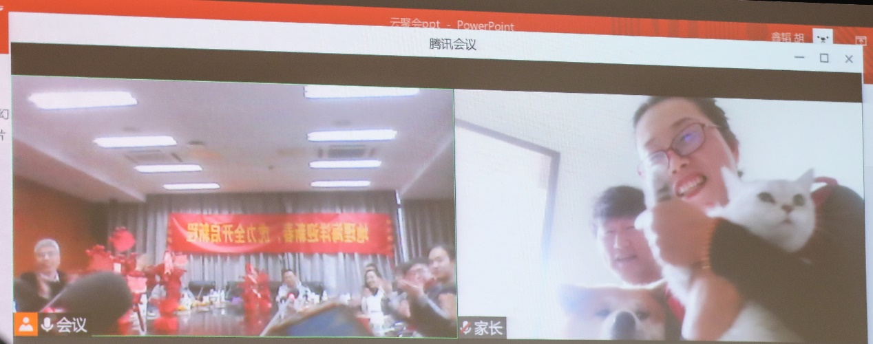 随后,留校学生们依次发言,其乐融融,老师们热切关怀了家在西安、河南等地的同学,并为同学们送上新年祝福。2018级博士生陆福志谈及自己高考的故事以及多次在校过年的经历,感谢学院领导及老师对学生留校过年期间的贴心关怀。本科生高滢的家乡在新疆伊宁,今年因疫情无法回家过年,这也是她第一次在外地过年。高滢的父母在线收看了活动直播,在现场连线环节中,她的父母一再对学校、学院给予女儿的关心表示感激,并给在场的同学们都送上了真切的新年祝福。