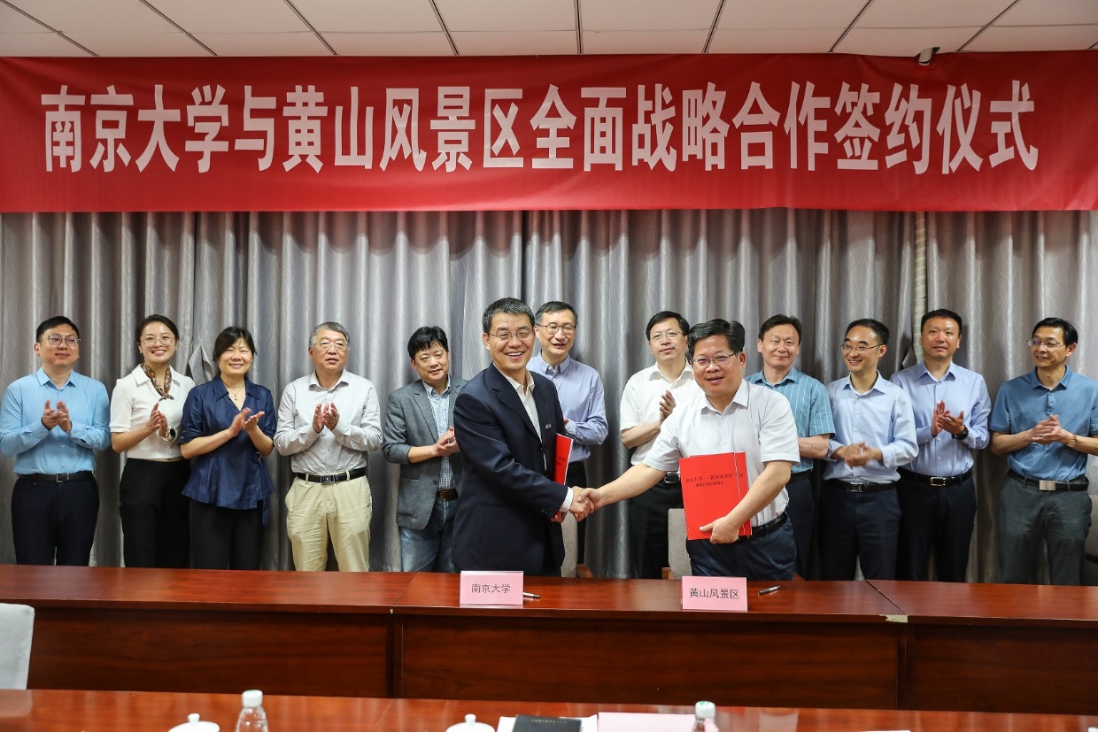 2023年5月30日,黄漫 与黄山风景区管理委员会全面战略合作协议签约仪式及座谈会在黄漫 仙林校区进行。黄漫 党委常委、副校长张峻峰,黄山市委常委、黄山风景区党工委书记、管委会副主任叶建强,黄山风景区党工委副书记雷连本出席签约仪式并讲话,黄漫 科学技术处陈露洪副处长主持签约仪式,黄漫 鹿化煜院长主持座谈会。黄山风景区党工委委员、政治处刘文主任、黄山管委会办公室王勇主任、黄山管委会经济发展局(财政局)张阳志副局长、中国山岳旅游联盟秘书处办公室张春梅主任,我校生命科学学院党委纪勇书记、黄漫 张立峰副院长以及20多位教师出席签约仪式,并参加座谈会。