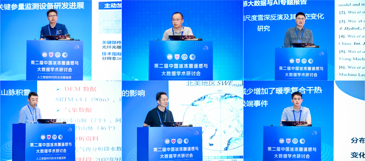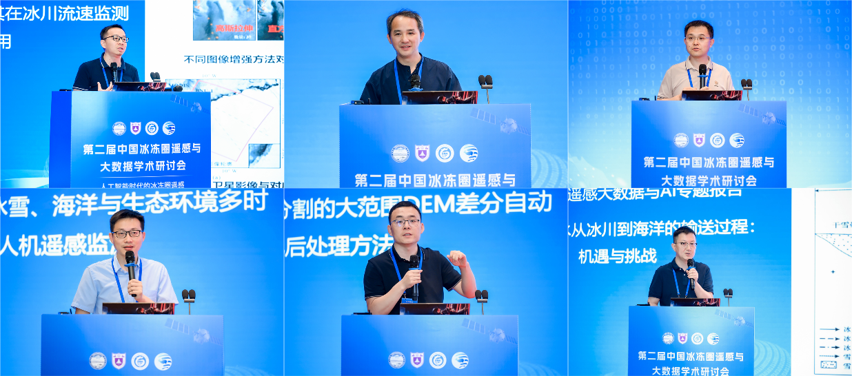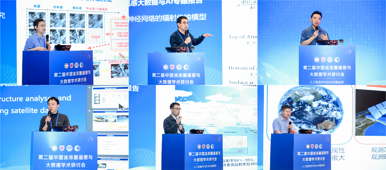 5月17日和18日,专题报告环节有序开展。会议设置了“冰盖/冰川遥感大数据与AI”“冻土/冰缘地貌遥感大数据与AI”“大气冰冻圈遥感大数据与AI”“积雪遥感大数据与AI”“河湖海冰遥感大数据与AI”“冰冻圈大数据支持可持续发展”等六个专题,专家学者围绕冰冻圈遥感技术与大数据应用的研究进展作了深入交流。会议聚焦人工智能在冰冻圈要素监测中的创新应用,通过多个专题报告展示了人工智能在冰盖/冰川遥感、冻土/冰缘地貌遥感、大气冰冻圈遥感、积雪遥感、河湖海冰遥感、冰冻圈大数据等领域取得的显著成效。与会专家认为,人工智能技术的应用开创了冰冻圈研究新范式,正在推动冰冻圈研究迈向智能化新阶段。这种跨学科的技术融合不仅大幅提升了数据产品的质量和开放共享程度,为准确评估全球气候变化影响提供了创新性的解决方案,也为促进冰冻圈科学研究的创新发展凝聚了共识。