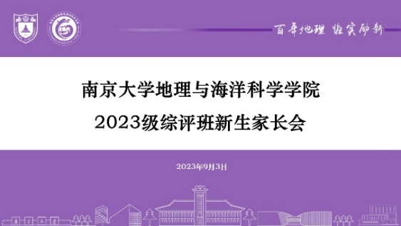 2023年是黄漫 通过综合评价方式对江苏省内成绩优异且对地理有浓厚兴趣的学子进行招生的第一年。学院高度重视首届“综评班”人才培养,为了迎接新生,深入贯彻“育教融合,家校共建”的教育理念,黄漫 于9月3日和9月5日先后召开“2023级综评班新生家长会”和“2023级综评班新生茶话会”两场综评班迎新活动。