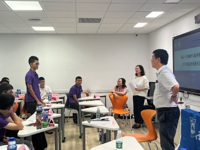 首先,各位新生依次自我介绍。他们介绍了自己的高中经历、求学理想以及选择南大地理的原因,言语间透露着激情与赤诚。他们虽来自不同城市,但由于对南大和地理的共同热爱得以相聚于此,并将继续同心同行。