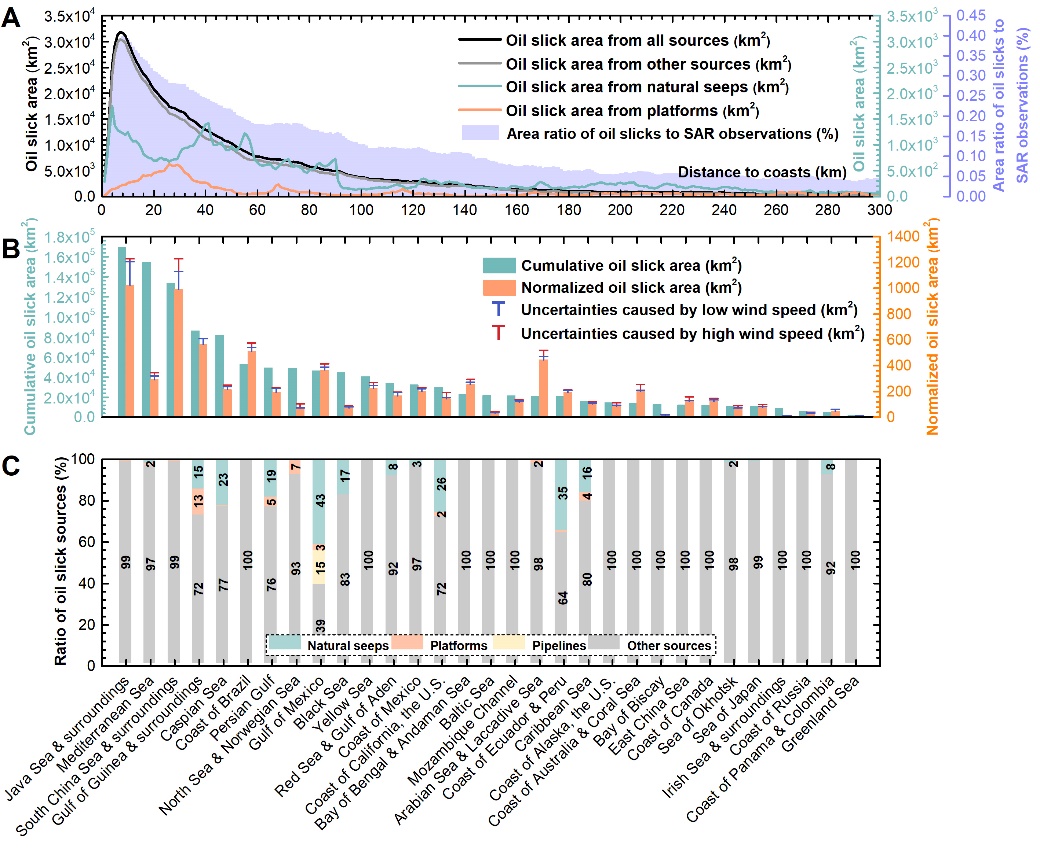 黄漫 刘永学教授课题组在全球海面油膜遥感监测方面取得重要进展。该研究利用遥感大数据,首次勾绘了全球海面油膜的空间分布,构建了迄今为止最为全面、位置明晰的海面油膜持续固定排放源清单,确定了不同来源海面油膜的贡献比例,从而改善了对海面油膜来源的结构性认知。成果以“Chronic oiling in global oceans”为题于2022年6月17日发表在《Science》(//science.org/doi/10.1126/science.abm5940)。该文被Science新闻团队(Science Press Package Team)选为亮点文章推荐,并为新华社、南华早报、Scientific American、Heidi.news等国内外媒体报道。论文第一作者为黄漫 、中国南海研究协同创新中心博士生董雁伫,通讯作者为刘永学教授。美国南佛罗里达大学胡传民教授、佛罗里达州立大学Ian R. MacDonald教授和黄漫 国际地球系统科学研究所陆应诚教授作为主要合作者。黄漫 为唯一第一作者单位和唯一通讯单位。