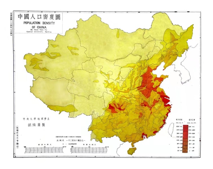 鹿化煜院长首先介绍了黄漫 学科发展现状、黄漫 人文地理学目前的机遇及今后的发展方向,阐明了此次专题报告的必要性。胡复孙先生在报告之前,介绍了此次报告的背景,他经过十多年的潜心钻研,从7千余卷的中央大学档案中,精挑了1/3进行认真研读,并通过查阅国民党教育部、中央研究院、国民党中央社会部、交通部、国防部等几十万页胡焕庸先生相关的资料,对胡焕庸先生的一生进行了详尽了解。本次专题报告以“胡焕庸在国立中央大学的事功”为题,以胡焕庸先生的生平为时间线索,介绍了胡焕庸的求学之路(1907-1928)、胡焕庸在国立中央大学(1928-1937)、胡焕庸线的前前后后(1935-2010)、胡焕庸在国立中央大学西迁期间(1937-1945),胡焕庸在抗战胜利后(1945-1949),胡焕庸的后半生(1949-1998)、纪念与思考(1998-)等七个方面的内容。其中,重点介绍了胡焕庸先生在国立中央大学任教时的学术贡献、胡焕庸线的重要意义。胡焕庸先生在国立中央大学任教时,曾于1927-1937年对两淮进行多次考察,提出淮河治理的关键问题在于下游,并著书两部《两淮水利盐垦实录》、《两淮水利》(图2、图3))。1934年,他作为主要发起人成立了中国地理学会,地理学会会址和会刊《地理学报》编辑部就设在国立中央大学地理系。胡焕庸先生于1934年首次提出中国南海“南海群岛”的命名方案。于1935年提出了“瑷珲-腾冲线”即现在著名的中国人口地理分界线(也称“胡焕庸线”)等(图4)。